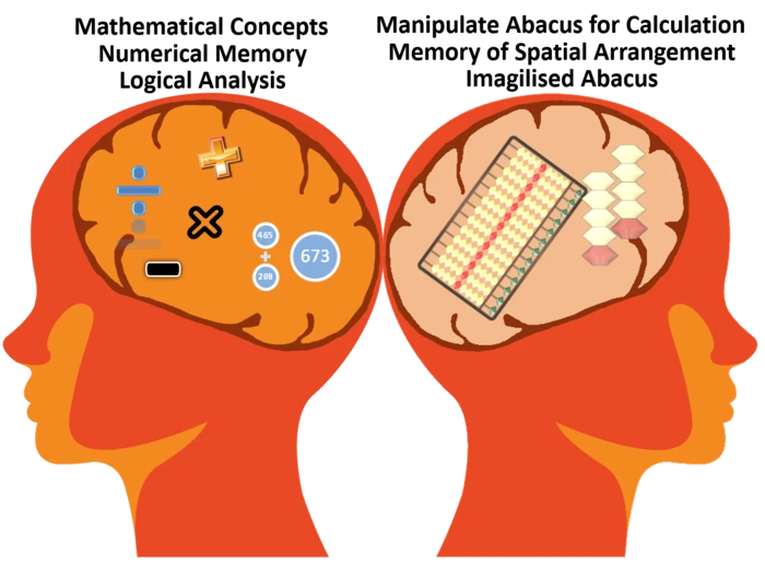 در مرحله اولیه به کودکان یاد داده میشود که از چرتکه فیزیکی استفاده میکنند. به تدریج آنها شروع به تصور کردن مهرههای چرتکه در مغزشان میکنند و رفته رفته با نزدیک شدن به پایان برنامه، قدرت حافظه آنها به اندازه ای قوی میشود که بتوانند همه محاسبات را ذهنی انجام دهند. از آنجایی که از تمرکز و تخیل کودکان کمک گرفته میشود، نوعی ورزش اعصاب محسوب میشود. همچنین سرعت عمل پاسخگویی را افزایش میدهد.